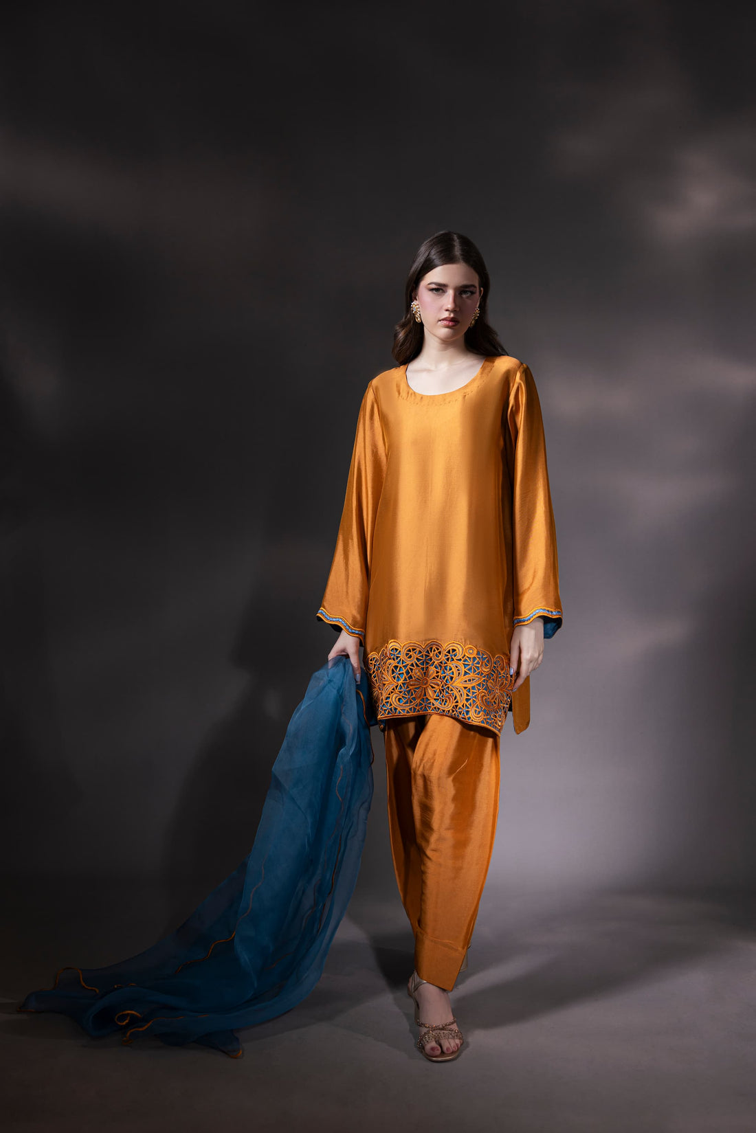3 Piece: Shirt: Pure Silk Pants: Pure Silk Dupatta: Organze Details: where sunshine meets...